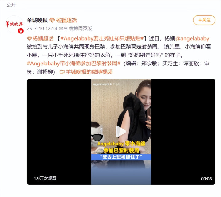 不止时装周,杨颖在忙碌的工作之余,也始终将儿子放在重要位置。