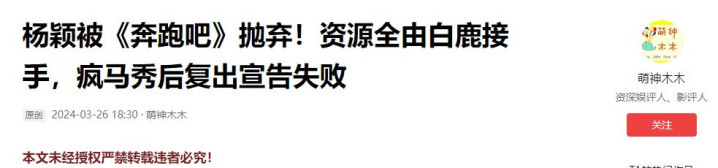 可疯马秀风波之后,她参与录制的《奔跑吧》等多档热门综艺,相关画面被紧急删除。