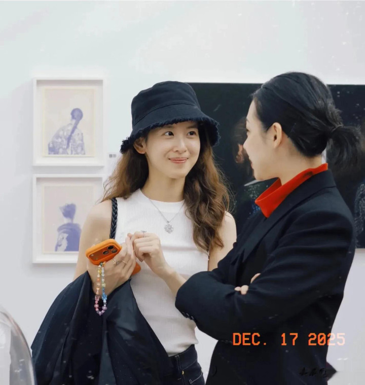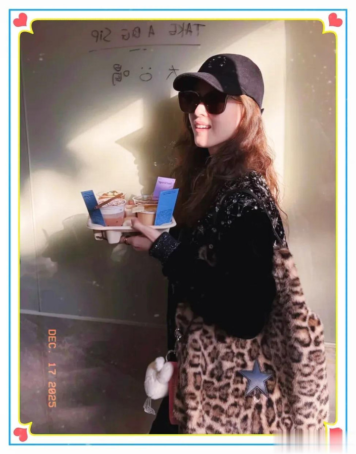 章泽天穿着黑色亮片外套,背着豹纹包包,烫的卷发,戴着棒球帽,素颜皮肤白皙,紧致有光泽,少女感十足,虽然戴着墨镜,可是露出的面部给人一种清新脱俗的感觉,不愧是奶茶!真的很漂亮!给人感觉很舒服,很温柔!