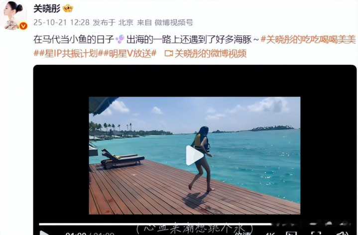 这条动态是她度假的vlog,要说动态里最引人瞩目的,那就得说他穿泳衣出海浮潜了。