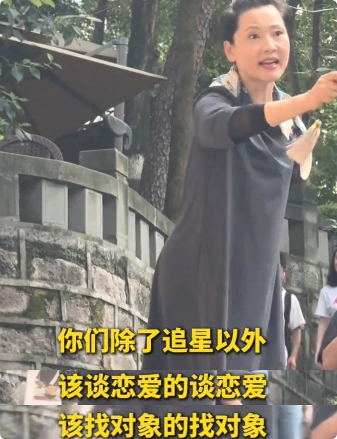 有粉丝去探班,她站在门口放声喊:“除了追星,该谈恋爱的谈恋爱,该结婚的结婚,该生娃的生娃,听到没有?”