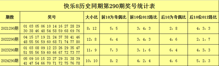 大小比分析:在历年第290期同期开奖中,奖号大小总比例为41:39,大小 号码开出频次基本相当,去年同期号码大小比为10:10,大小 号码开出频次与理论差不多,今年第290期同期防小 号转热,参考大小比6:14。