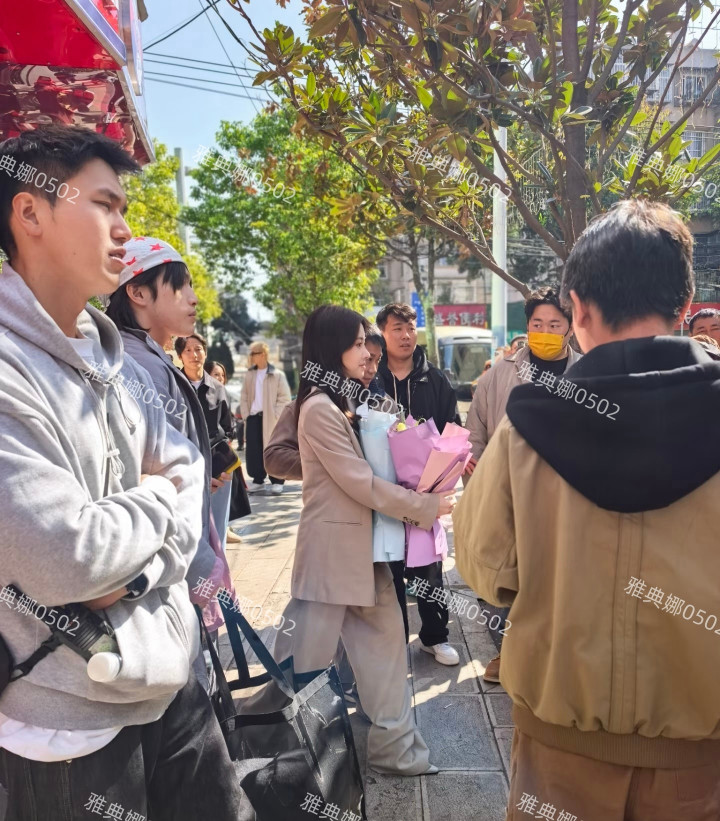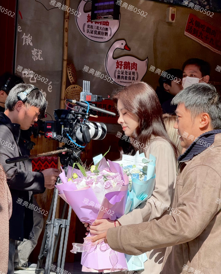 她今天现身昆明录综艺,她虽然穿了高跟鞋但本人个子并不高,她穿了一套浅米色的西装,梳着韩式中分披肩发,打扮的十分干练知性,手里捧着好几束鲜花看起来心情不错,但是她太瘦了衣服显得十分宽松,裤子也很长裤脚都拖在地上了。