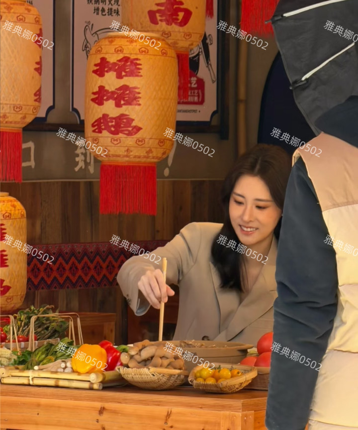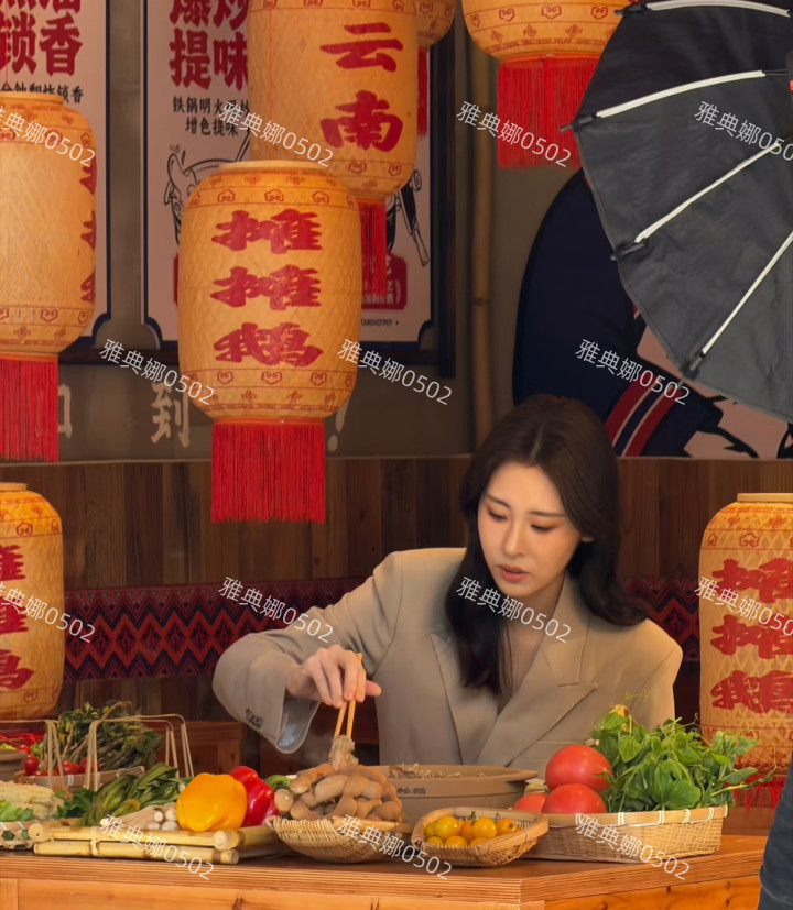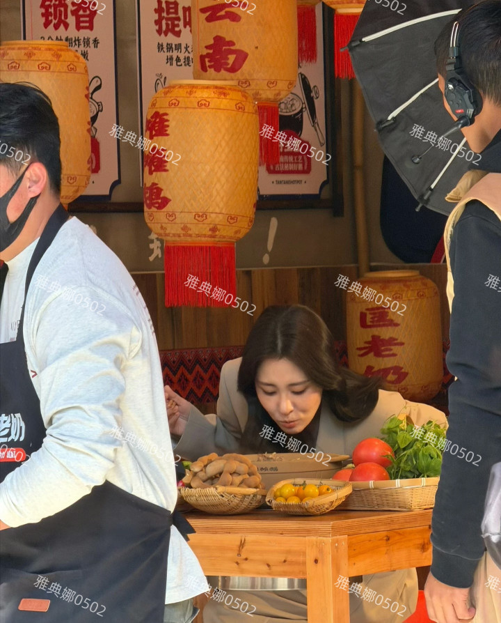 张碧晨应该是在录制一档与美食相关的节目,她坐在一张方桌前,桌子上摆满了五颜六色琳琅满目的瓜果和蔬菜,作为歌手,张碧晨的演技明显不够自然,她拿起过筷子凑近了闻食物的香味,做出很好吃很满足的样子,表情有点儿夸张。