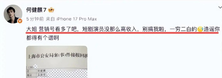 何健麒的明星光环并未持续太久,2025年,丑闻悄然登场,它给何健麒的演员之路,扮演了一个十分有力的拐点,谣言源头是一名叫“榜一大姐”的女性,她把何健麒的点赞账单,好多张亲密合影,甚至他俩的微信聊天截图都公诸于众,机智表示何健麒正肩负着代表粉丝想法挣钱又贪恋恋情的双重剥削,大肥羊姐还爆料出更多的信息,就是何健麒不断出轨,在这股舆论洪流里,许多人都内心萌动,大家旋即收到战火面前饱受重创的何健麒。