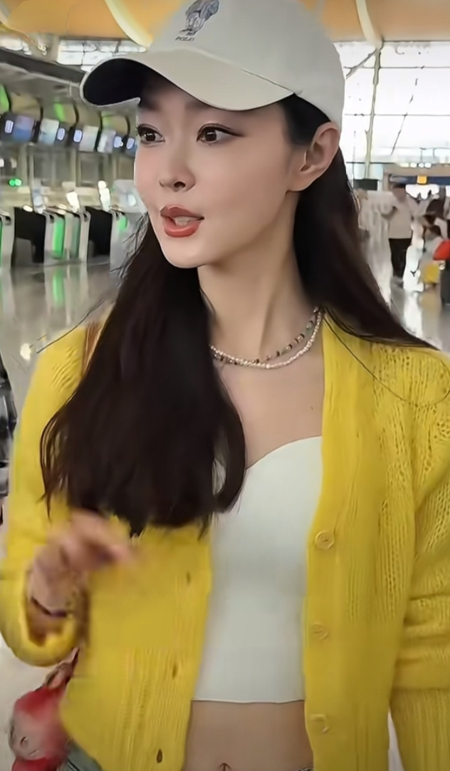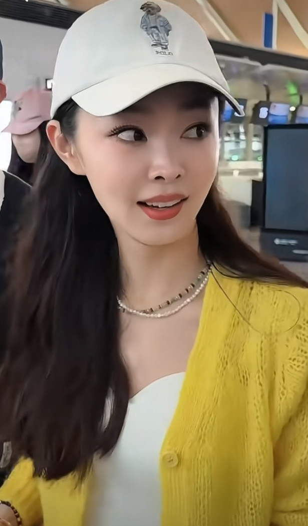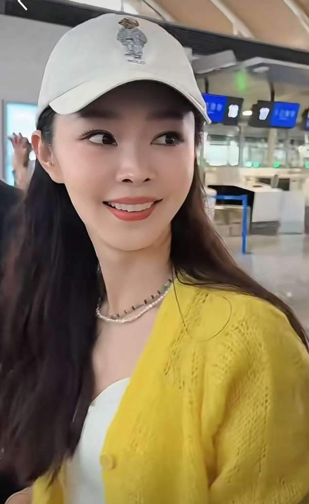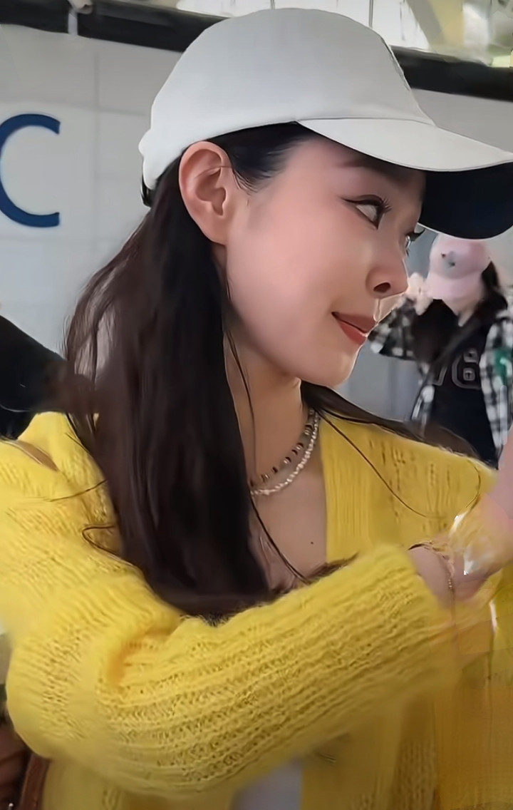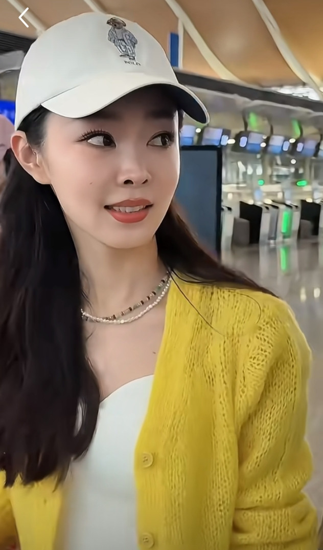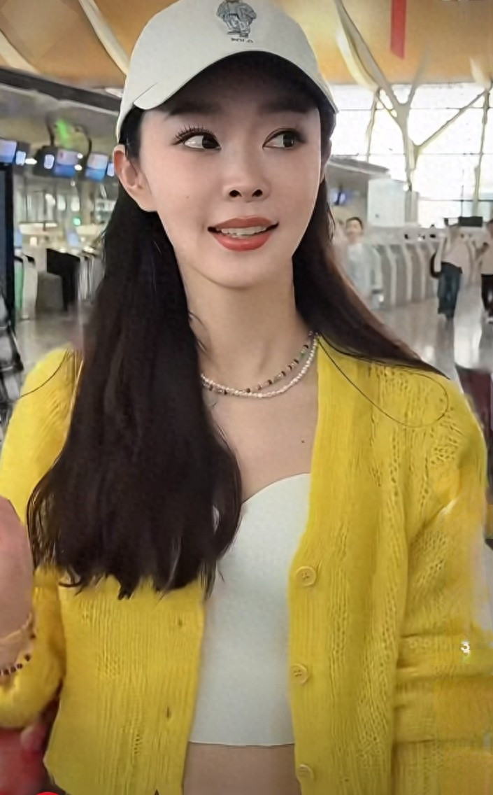 宋轶机场造型清新又撩, 白短上衣露纤细小蛮腰, 搭黄针织开衫美翻