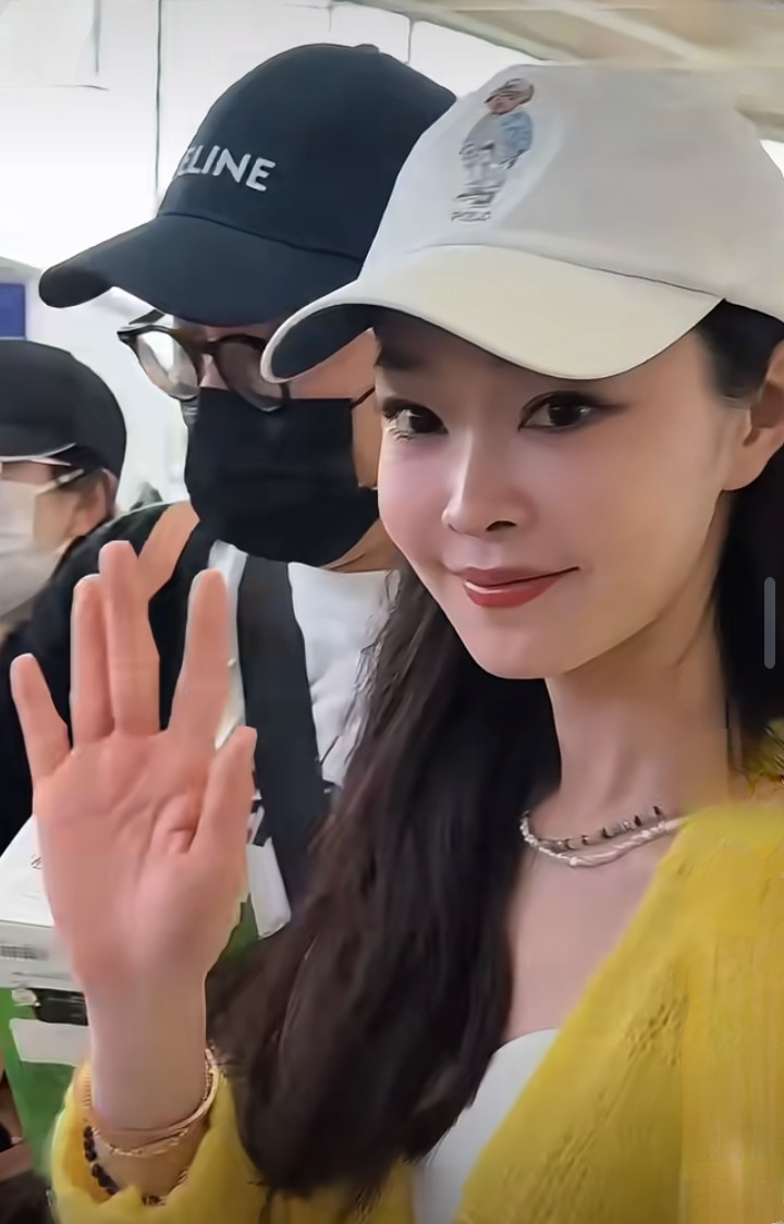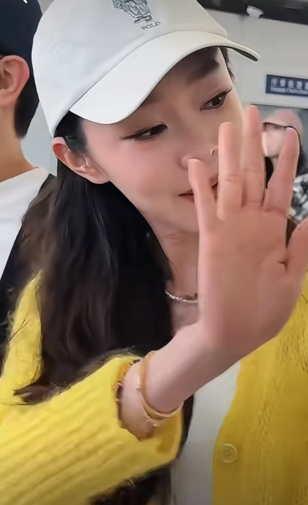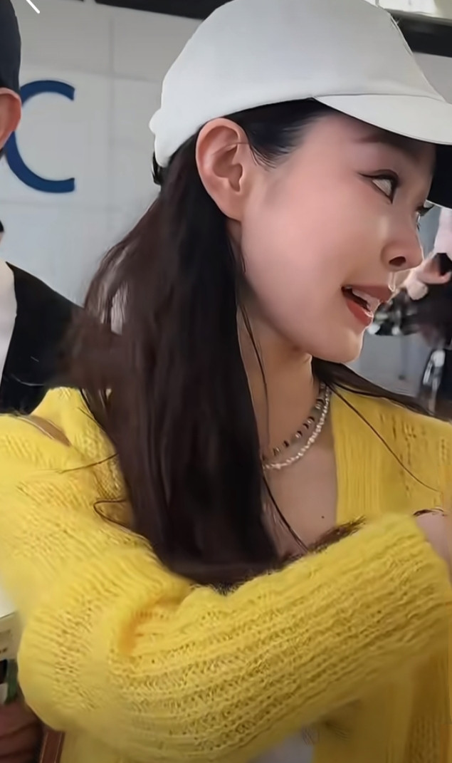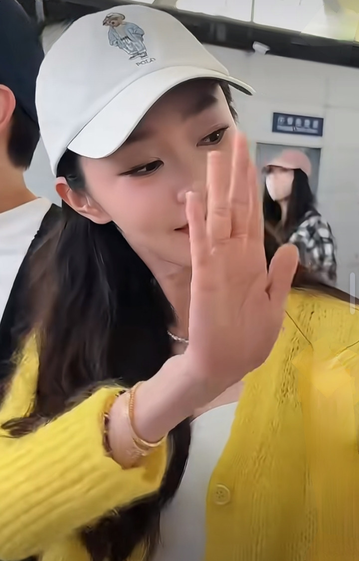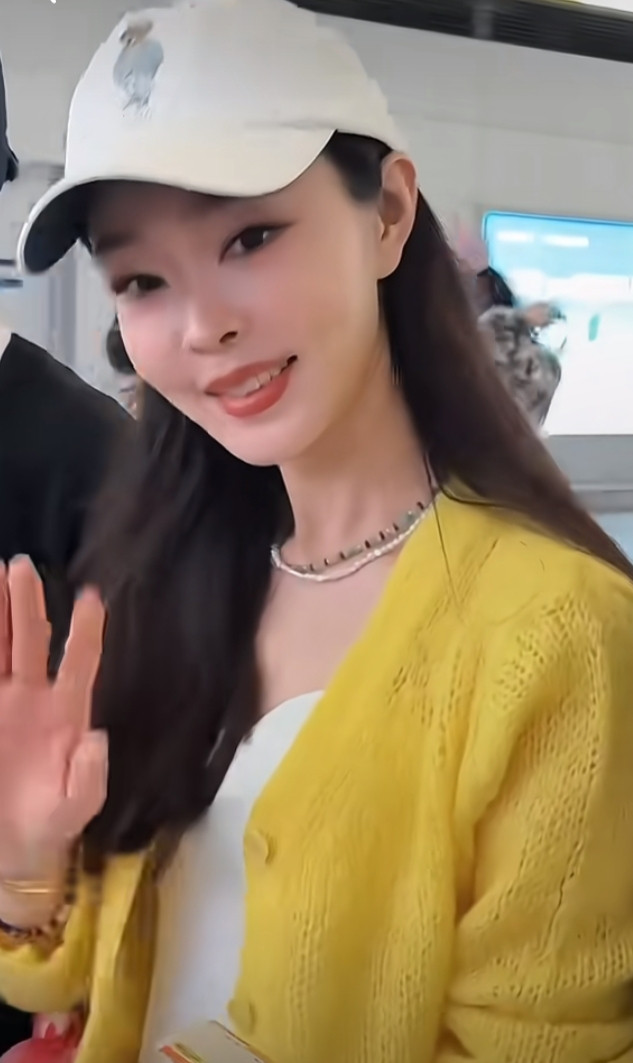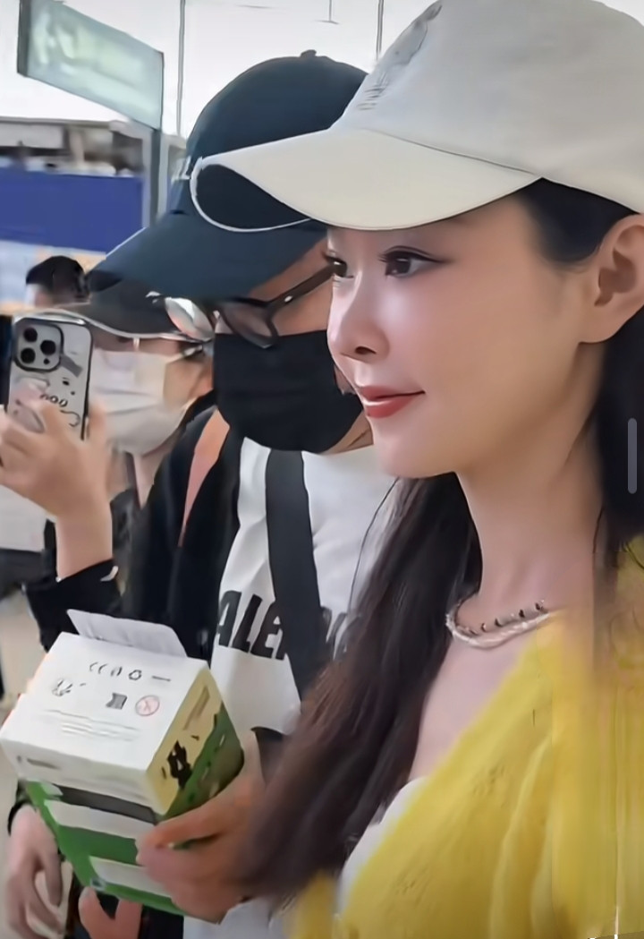 宋轶机场造型清新又撩, 白短上衣露纤细小蛮腰, 搭黄针织开衫美翻