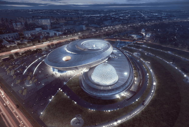 整个设计灵感源自外星,这说明了整体展馆形态注定是不常见、甚至不循规蹈矩的。展馆外观强调了地球轨道的形式,轨道是一个对我们的生存至关重要,却时常被我们忽略的地球特征。
